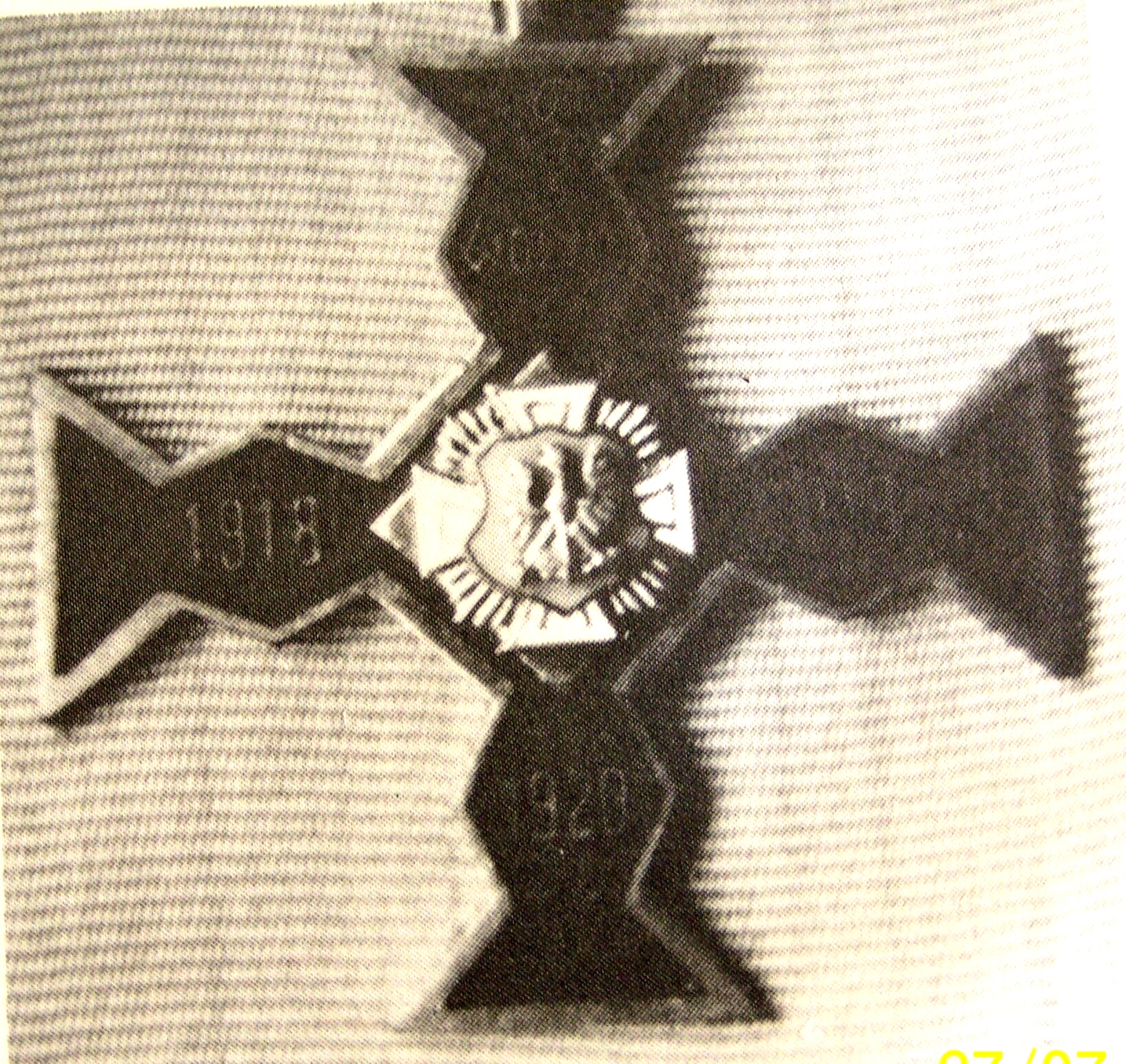 W górnej części tego dyplomu pomiędzy dużą czcionką wydrukowanymi datami 1918 – 1920 umieszczono dokładny rysunek znanego nam krzyża, warto mu się przyjrzeć. Na rysunku tym widać istotne różnice, zamiast dwóch rzymskich mieczy skierowanych ostrzami w górę umiwszczono dwie zakrzywione skierowane ostrzami do dołu szable.