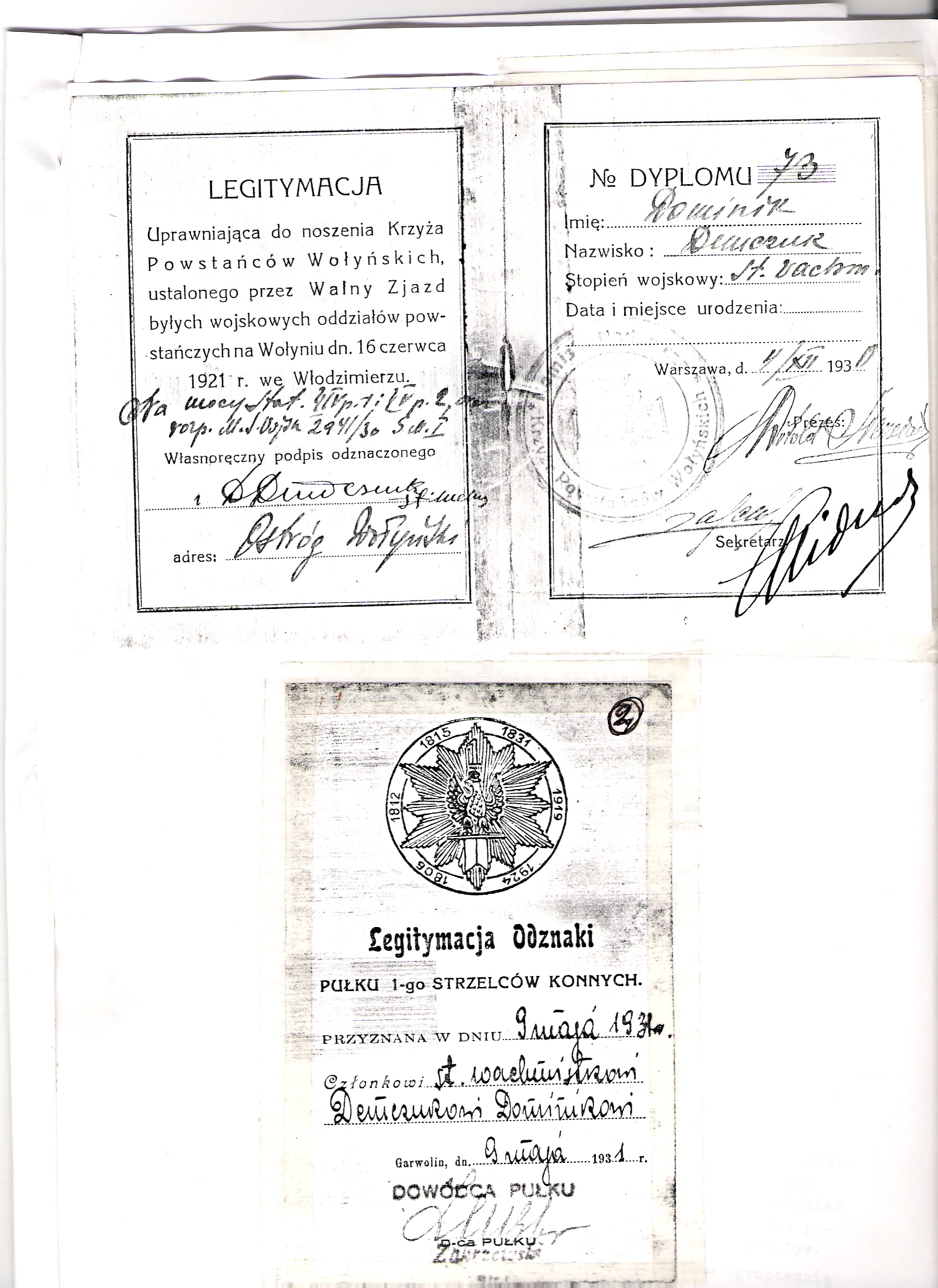 starszemu wachmistrzowi Dominikowi Demczukowi. Niestety samo odznaczenie nie zachowało się w zbiorach rodziny Demczuków.