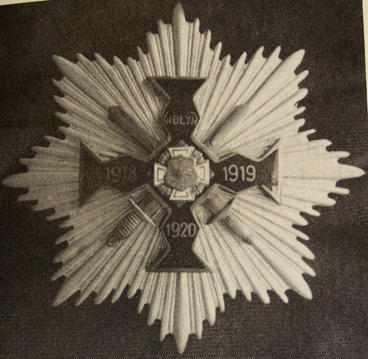 Przedstawia Wielki Krzyż Wołynia z Gwiazdą. Najwyższy stopień tego odznaczenia to Wielki Krzyż Wołynia z Gwiazdą. Na dużej ośmioramiennej jasnej, srebrnej gwieździe orderowej umieszczony jest nietypowego kształtu równoramienny krzyż, wielkości 40 mm ze złotym obrzeżem.